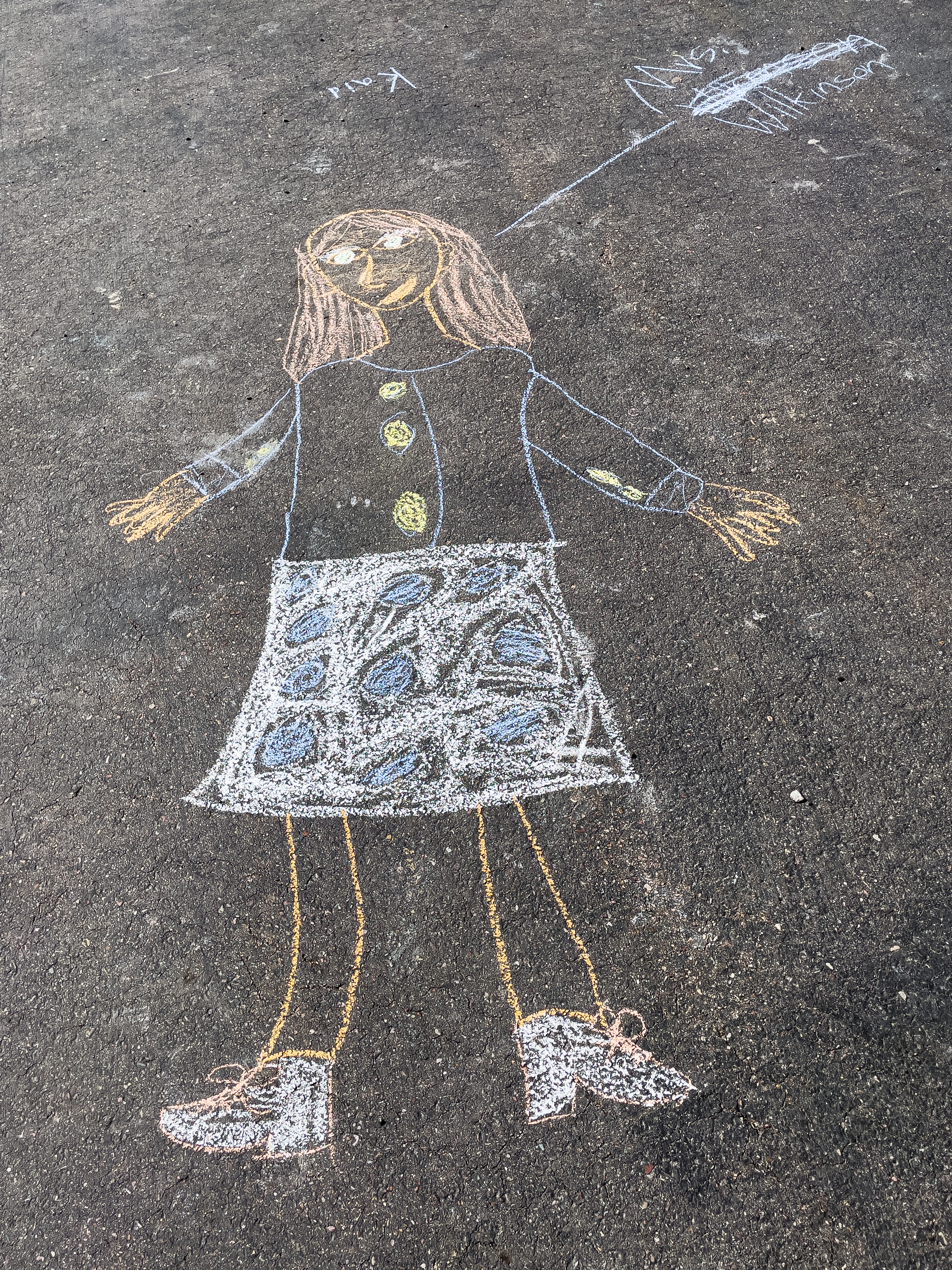 I love walking around the playground and seeing new chalk drawings, like this one of one of our substitute teachers made during art class. I love seeing our kids express themselves in fun and imaginative ways. It reminds me not to be so stodgy and to loosen up a little.
